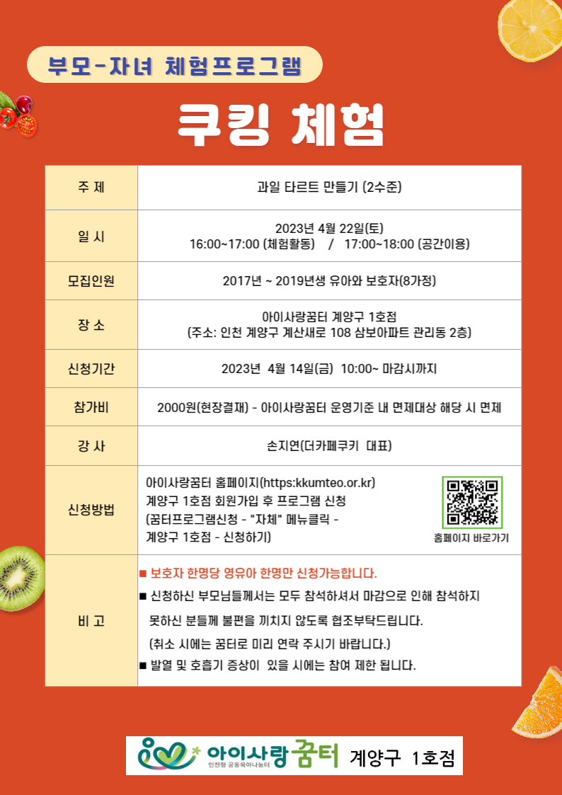 [1호점]쿠킹 체험 - 과일타르트 만들기(2수준)
