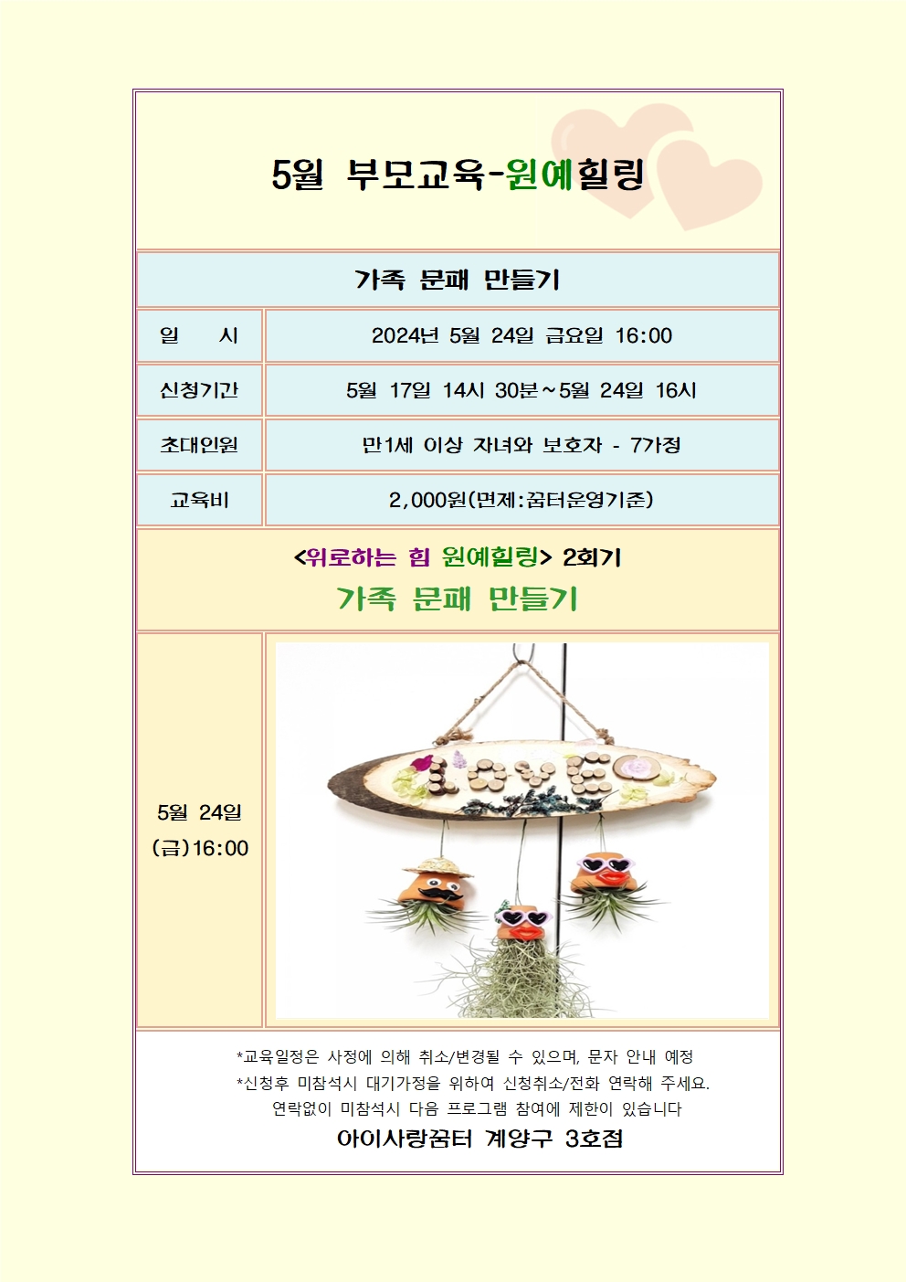 [계양구 3호점] 5월 부모교육 - 원예힐링 (가족 문패 만들기)