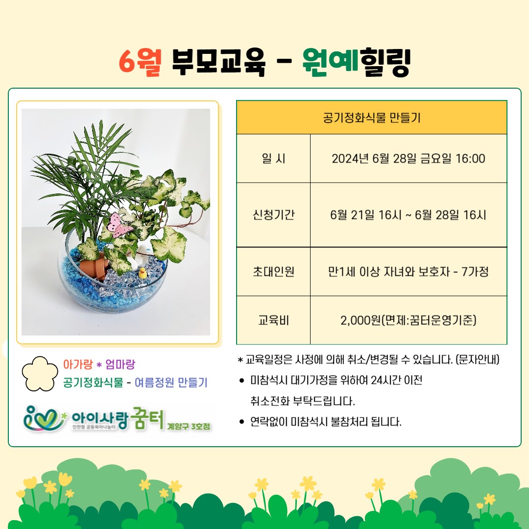 [계양구 3호점] 6월 부모교육 - 원예힐링 (공기정화식물-여름정원 만들기)