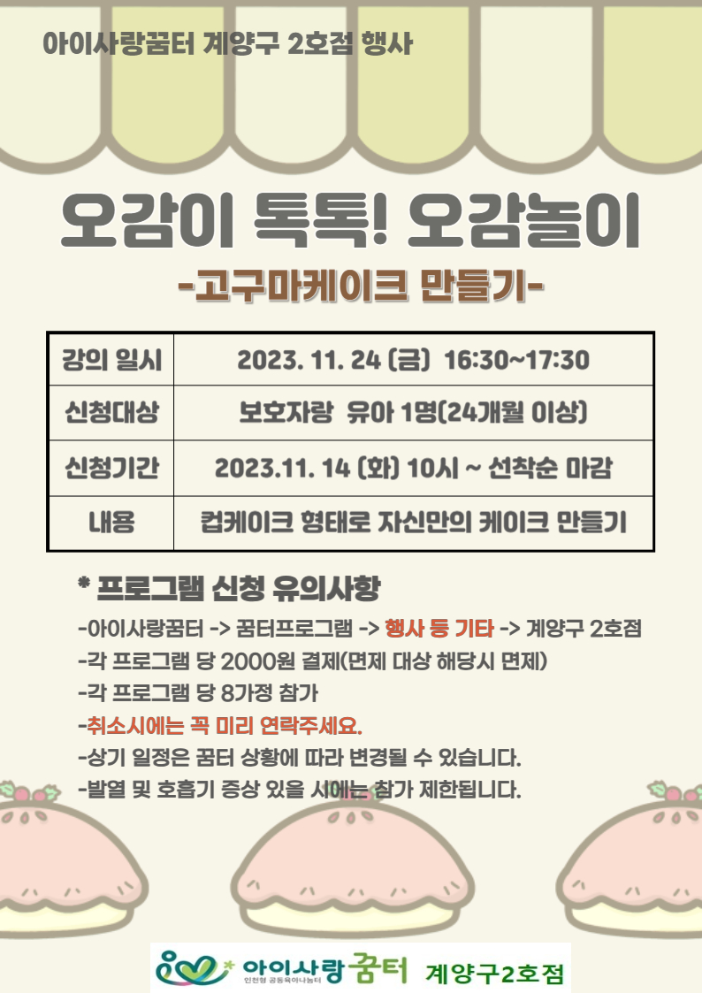 [꿈터2호점]오감이 톡톡!오감놀이 <고구마케이크 만들기>
