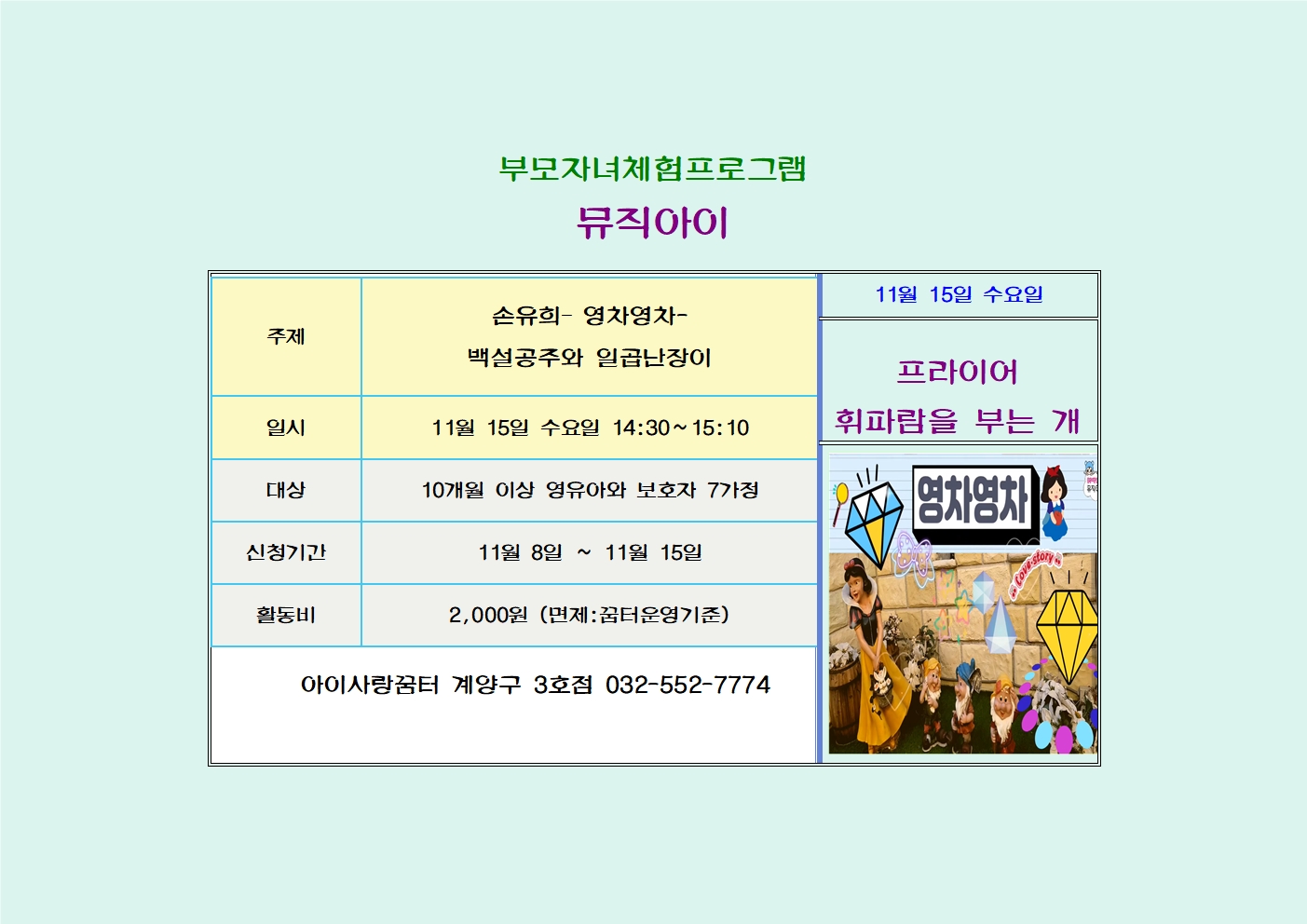 [꿈터3호점]부모자녀체험 프로그램 -뮤직아이-영차영차