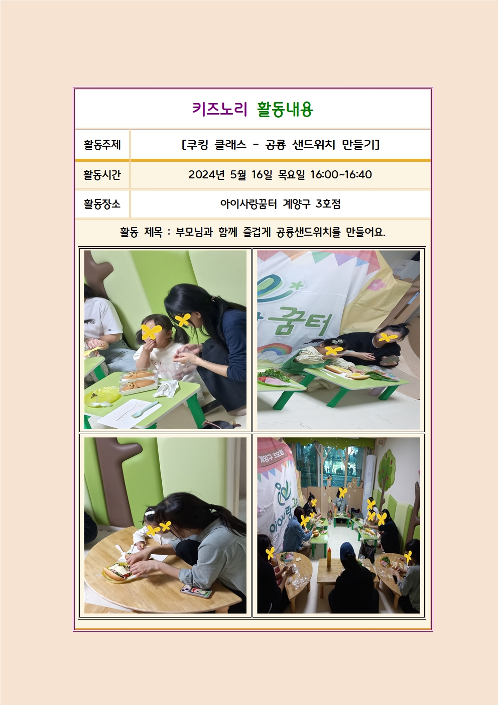 [계양구 3호점] 키즈노리 쿠킹클래스 - 공룡 샌드위치 만들기