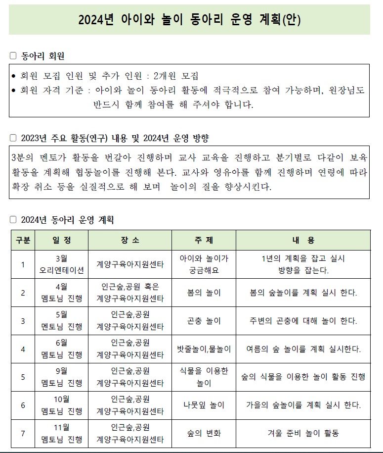 2024년 아이와 놀이 동아리 운영 계획(안)