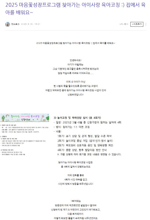 [부모SNS홍보단-계플루언서(6월)]_찾아가는 아이사랑 육아코칭 참여