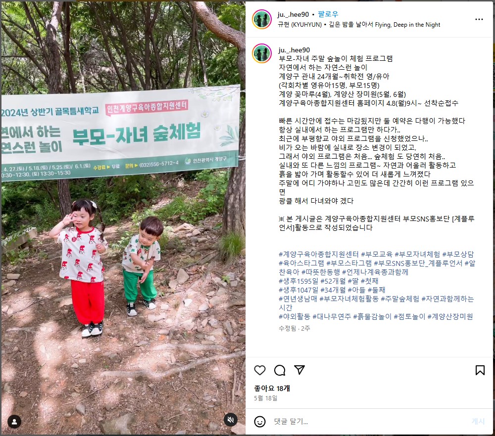 [부모SNS홍보단-계플루언서(5월)] 부모-자녀 숲 체험 참여 후기