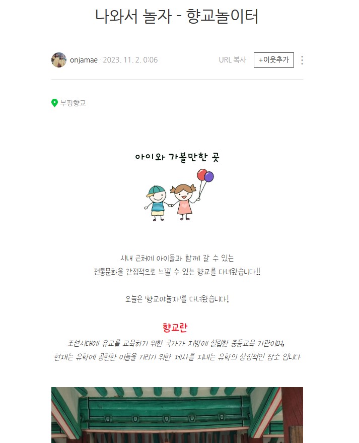 [부모SNS홍보단-계플루언서(10월)] 인천형 체험 '향교놀이터' 참여 후기