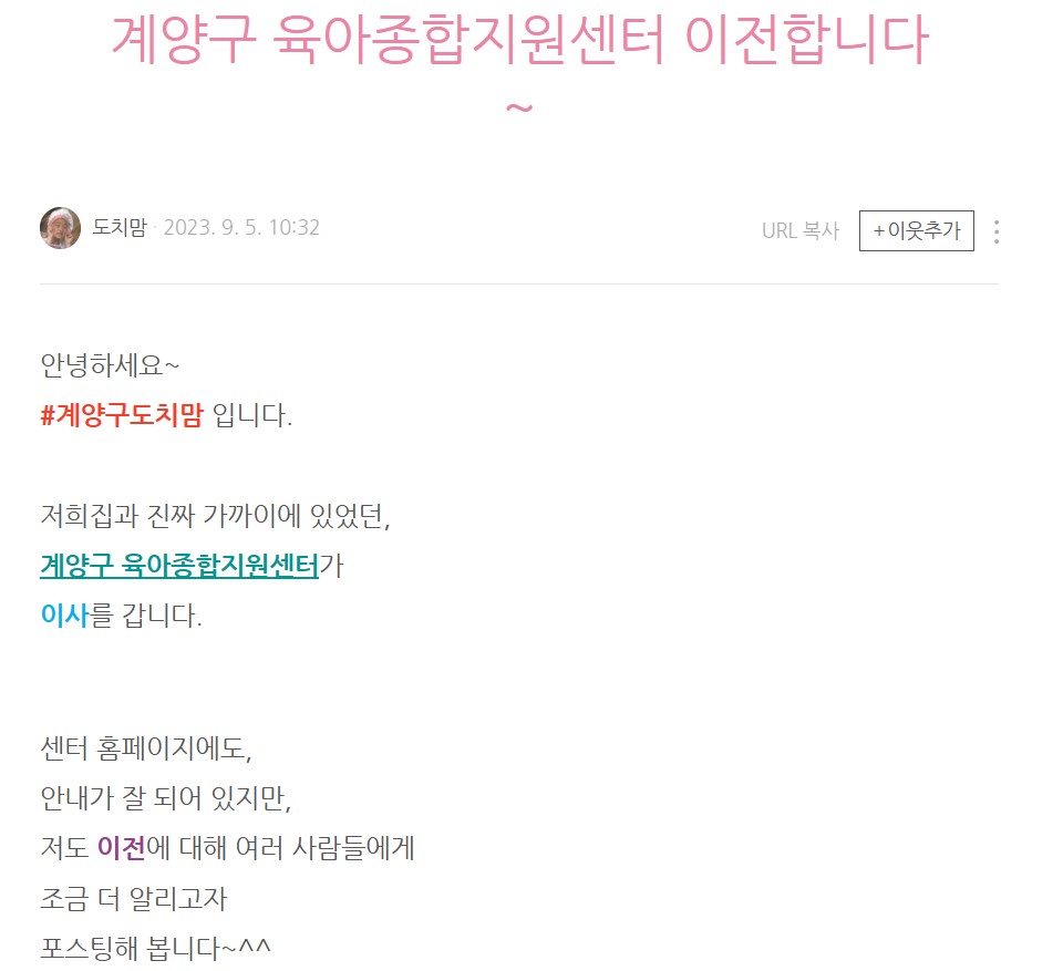 [부모SNS홍보단-계플루언서(9월)] 센터 이전 안내 및 홍보