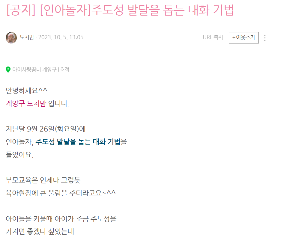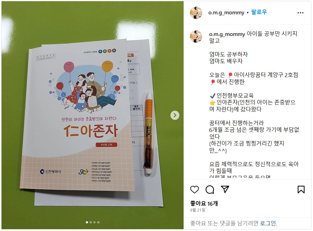 [부모SNS홍보단-계플루언서(9월)] 인천형 부모교육 참여 후기