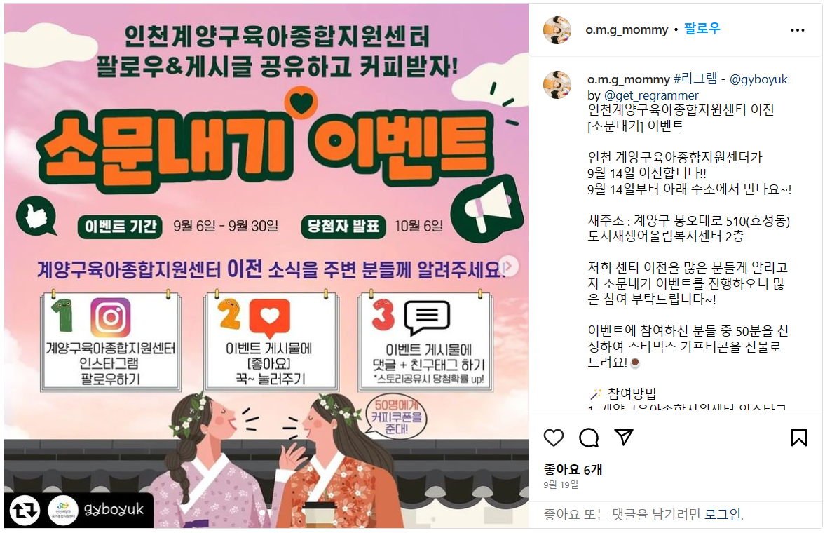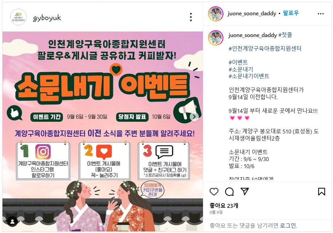 [부모SNS홍보단-계플루언서(9월)] 센터 이전 이벤트 홍보