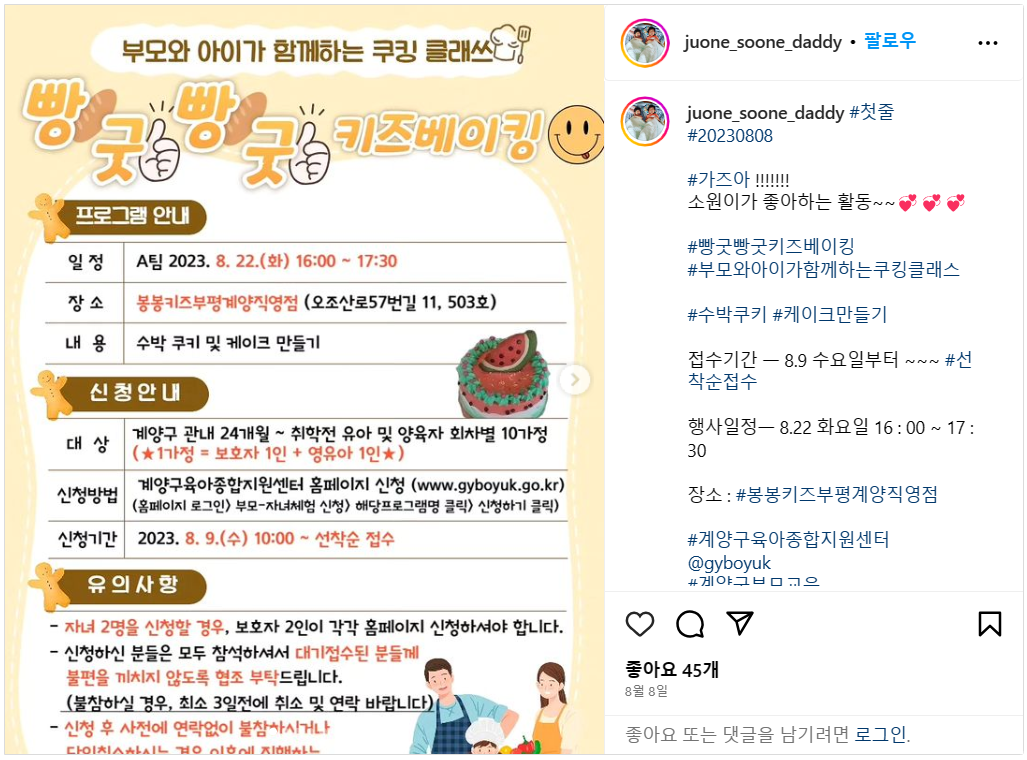 [부모SNS홍보단-계플루언서(8월)] 부모-자녀 쿠킹클래쓰 홍보
