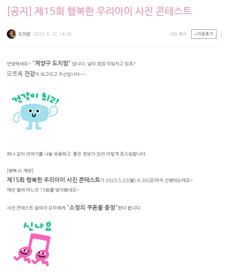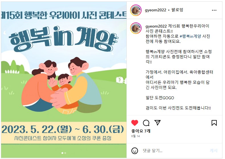 [부모SNS홍보단-계플루언서(6월)] 제15회 행복한 우리아이 사진콘테스트 & 행복in계양 안내
