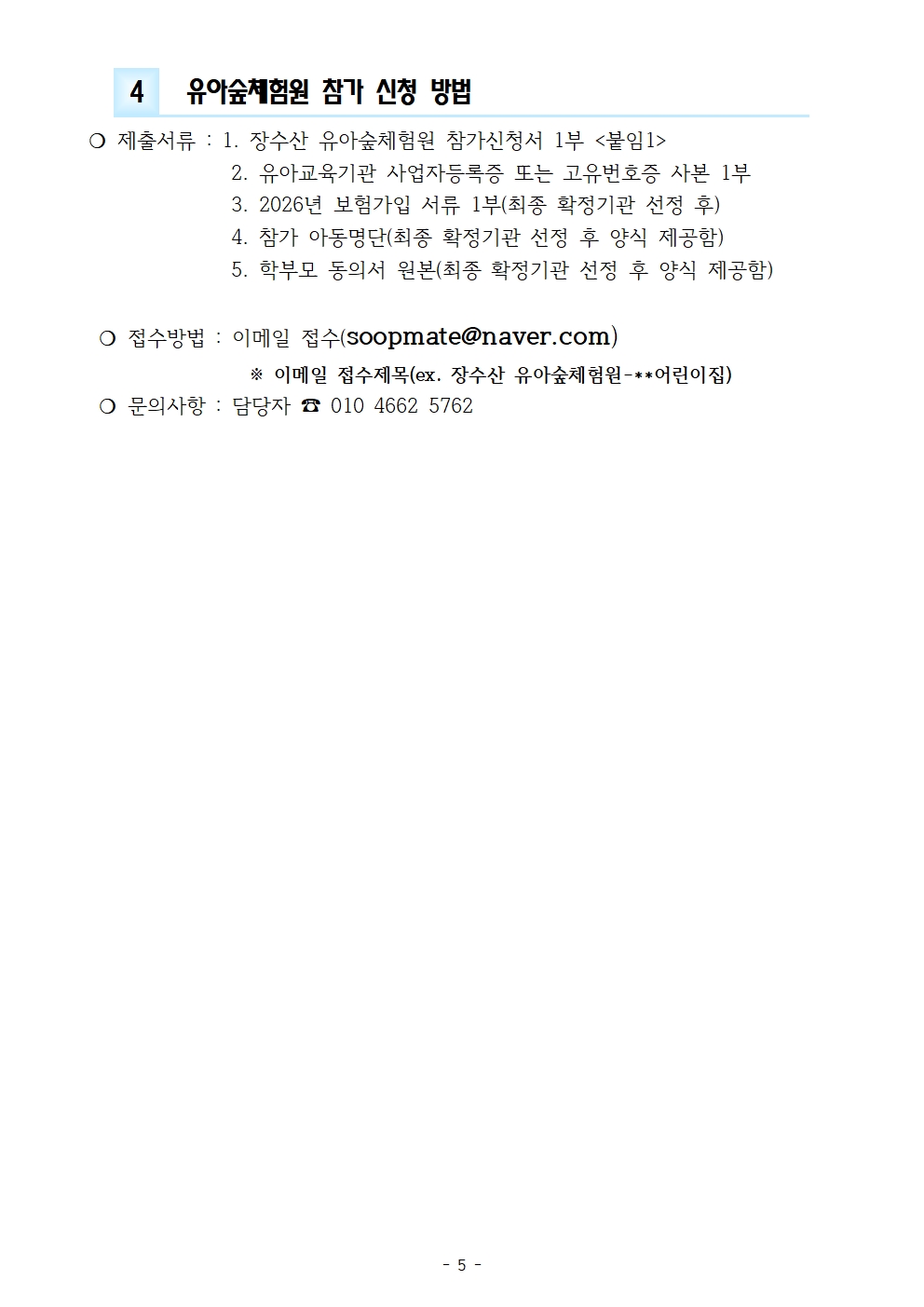 2026년 장수산유아숲체험원 모집공고(첨부서류-참가신청서).hwp