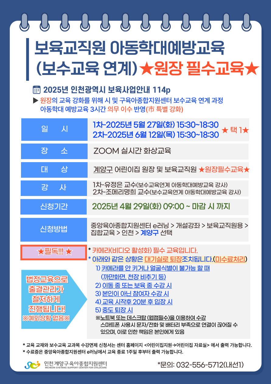 [1차, 5/27]★중앙e러닝 신청★보육교직원 아동학대예방교육(보수교육 연계)★원장필수★