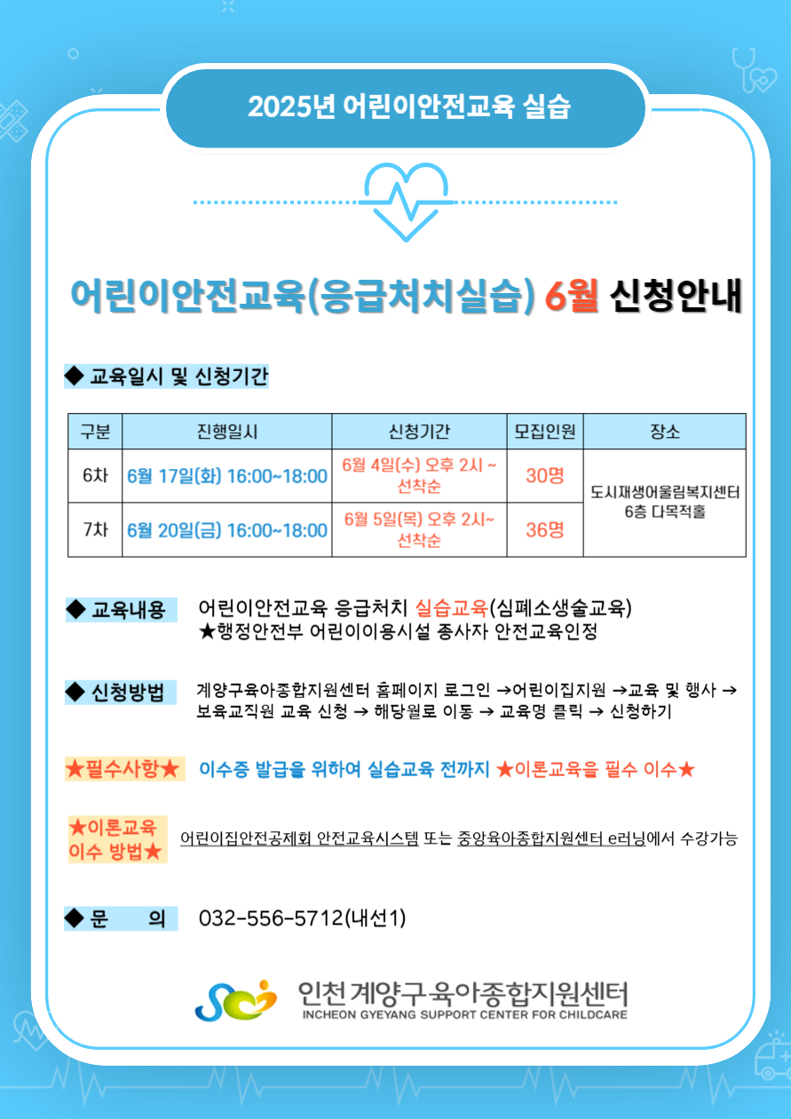 [6/17(화) 16시] 어린이 이용시설 종사자 안전교육(응급처치 실습교육)
