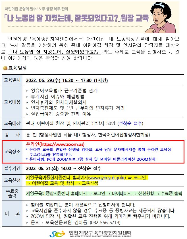 | 교육기간 | 2022-06-29(수) 16시30분 ~ 2022-06-29(수) 17시30분 | ||