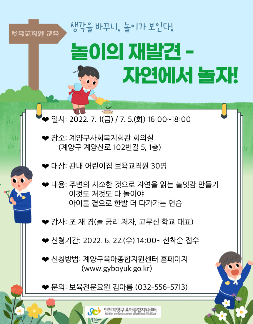 | 접수대상 | 원장, 보육교직원 | 정원 | 30명 (신청: 20) |