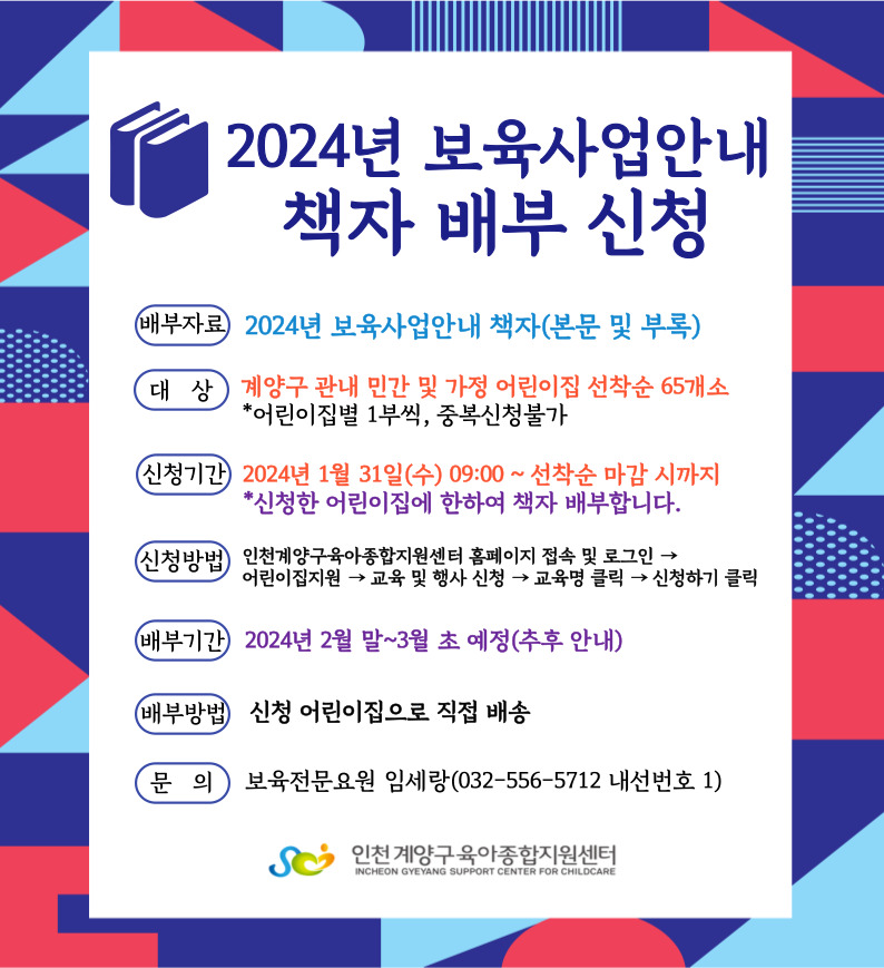 | 기타사항 | *민간 및 가정어린이집만 신청가능합니다. *어린이집 당 1명만 신청가능하며 1부씩만 배부 가능합니다. |