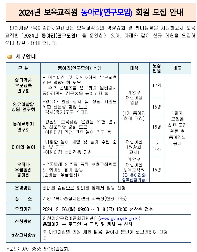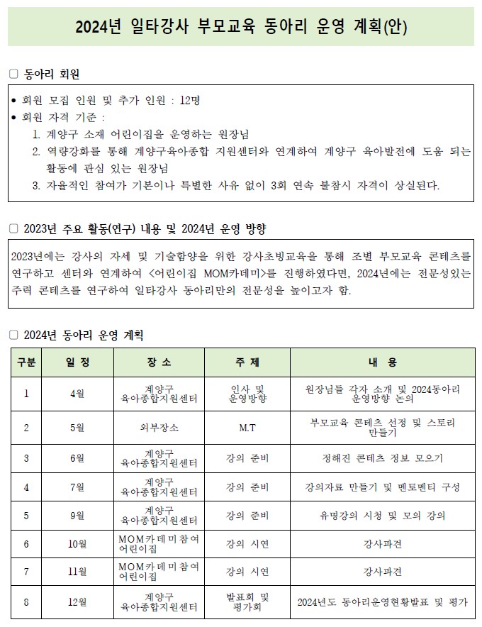 | 접수대상 | 원장 | 정원 | 12명 (신청: 12) |