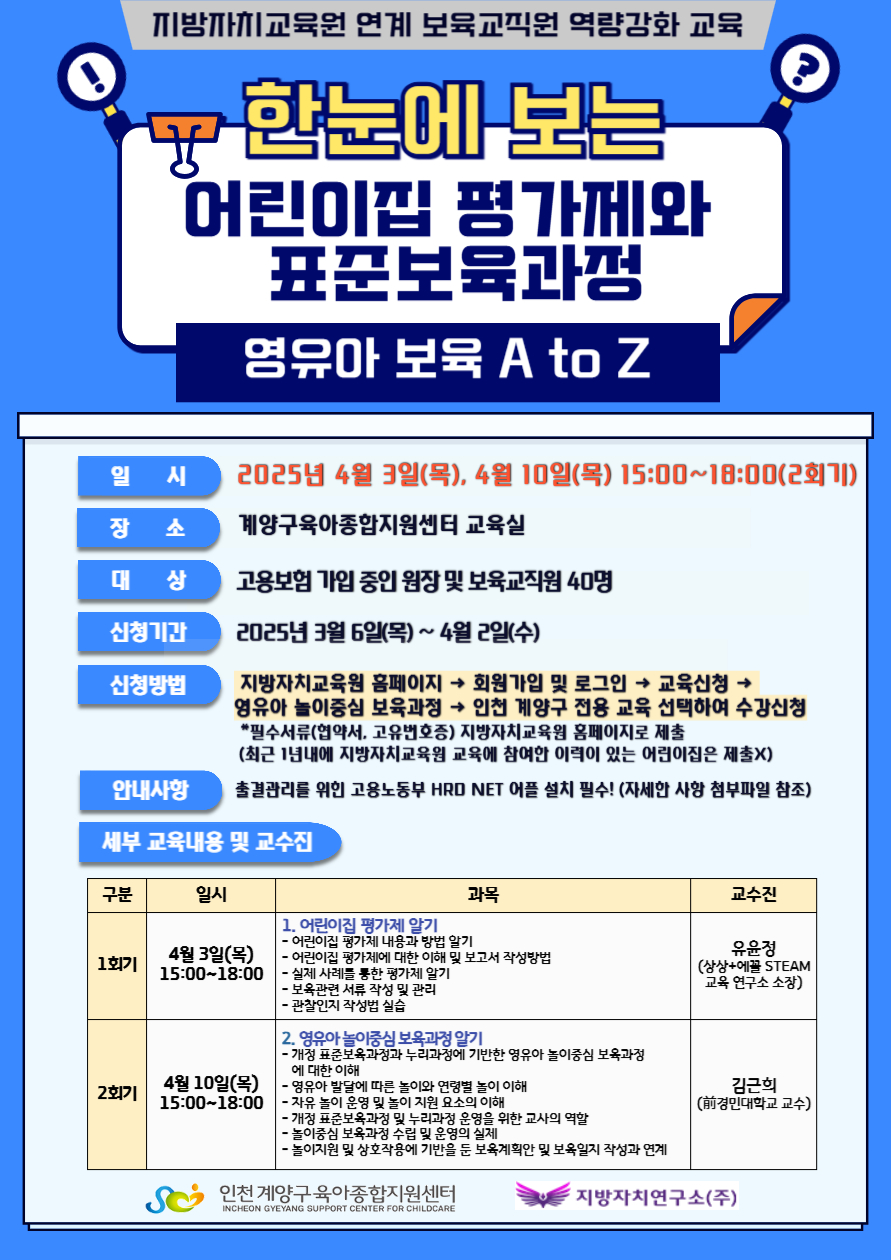 | 접수대상 | 원장, 보육교직원 | 정원 | 30명 (신청: 30) |
