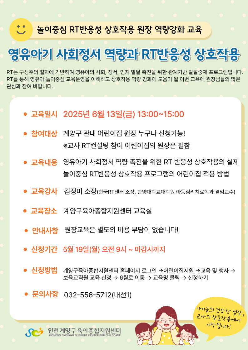 ※RT 컨설팅에 참여하는 어린이집의 원장님은 이 교육에 필참해주시기 바랍니다.