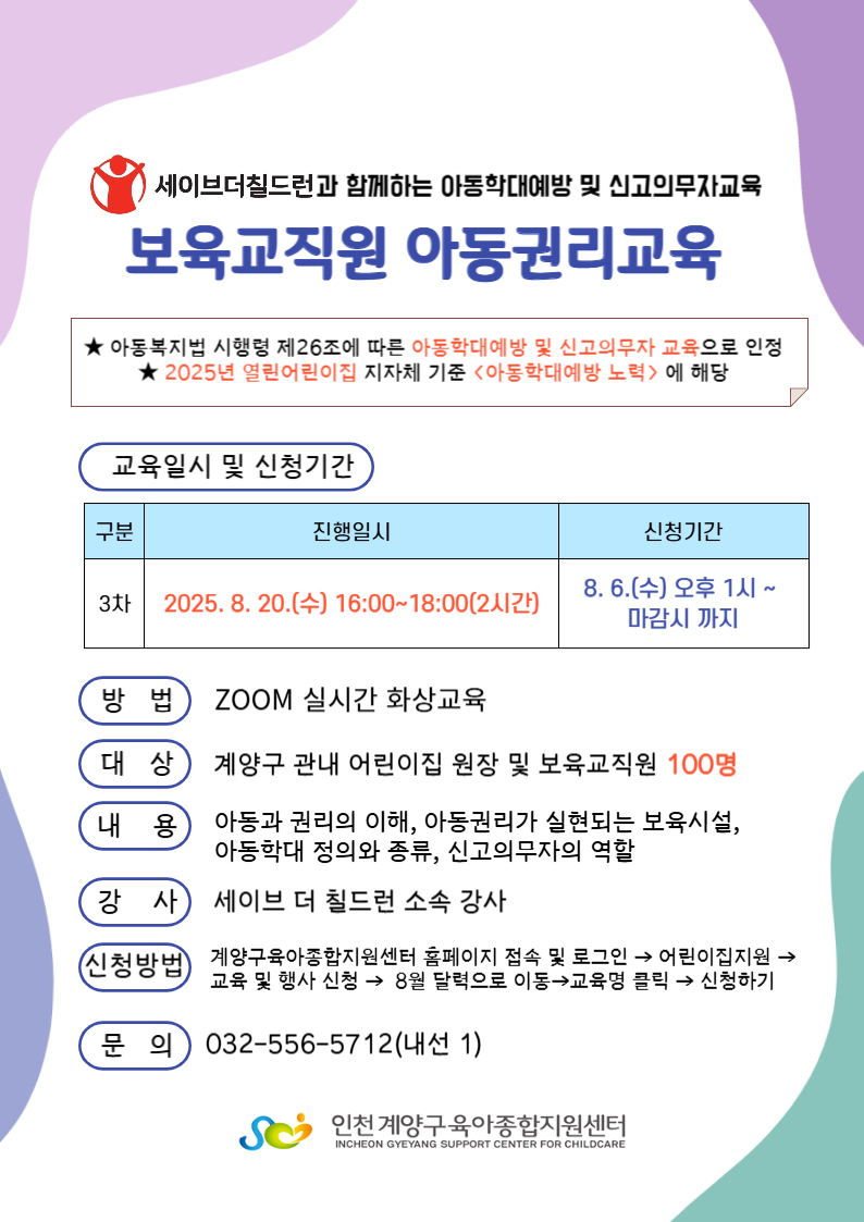 보육교직원 아동권리교육(아동학대예방 및 신고의무자 교육)
