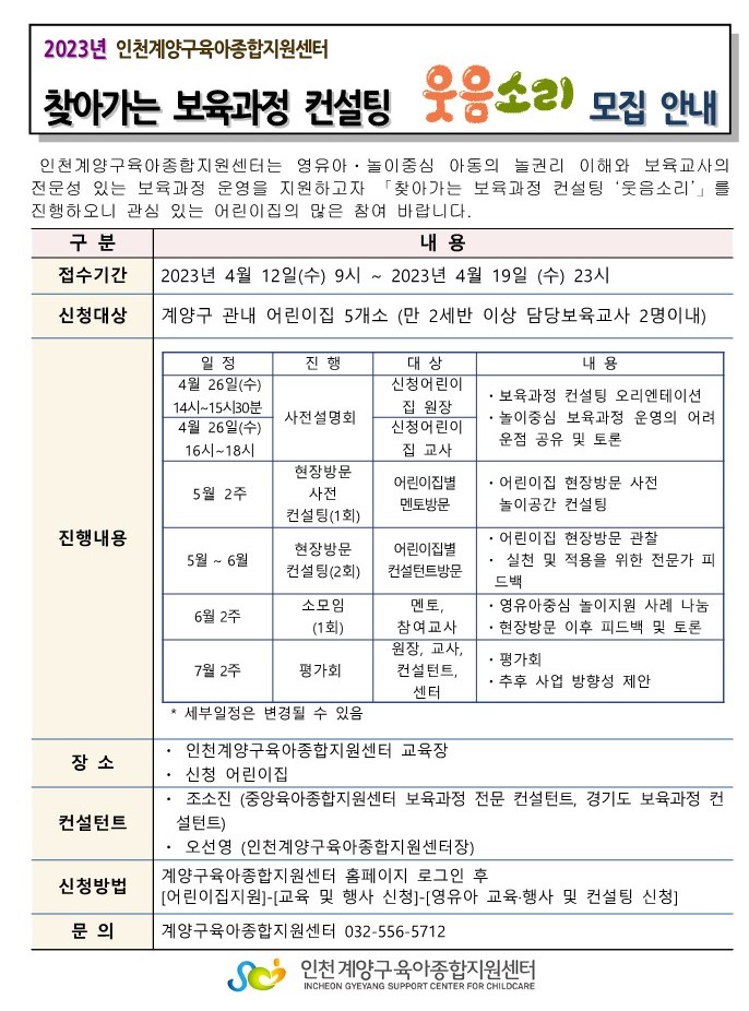 | 장소 | 인천계양구육아종합지원센터 교육장 | 공연팀 | |