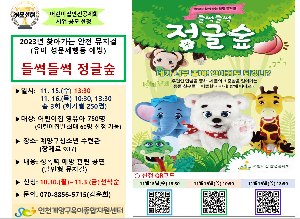 | 장소 | 계양구 청소년 수련관 | 공연팀 | 어린이집안전공제회 |