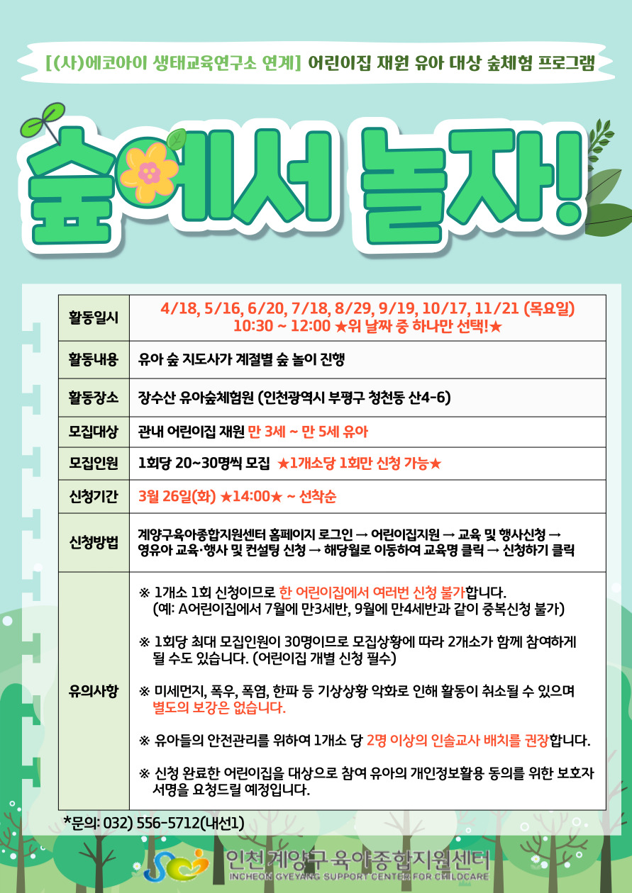 | 준비물 | 문의 | 032-556-5712(내선1) | |