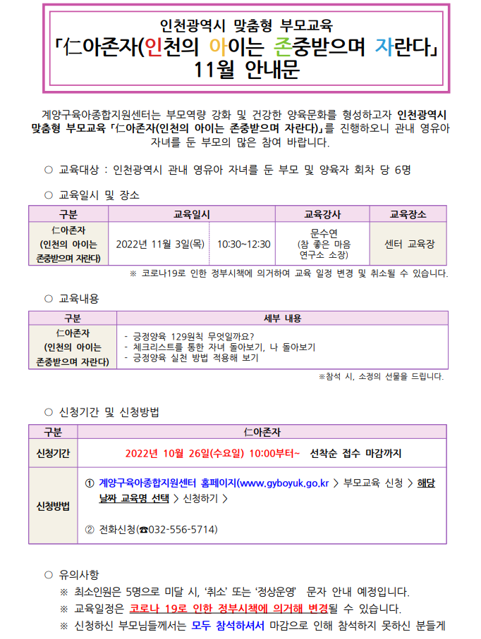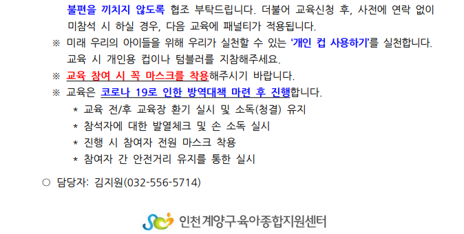 | 장소 | 계양구육아종합지원센터 1층 교육장 | ||