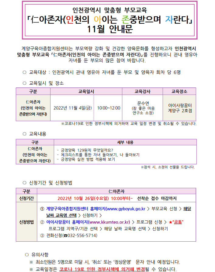 ※ 교육 신청하려면 신청하기버튼을 클릭한 후 신청서를 작성해 주시기 바랍니다.