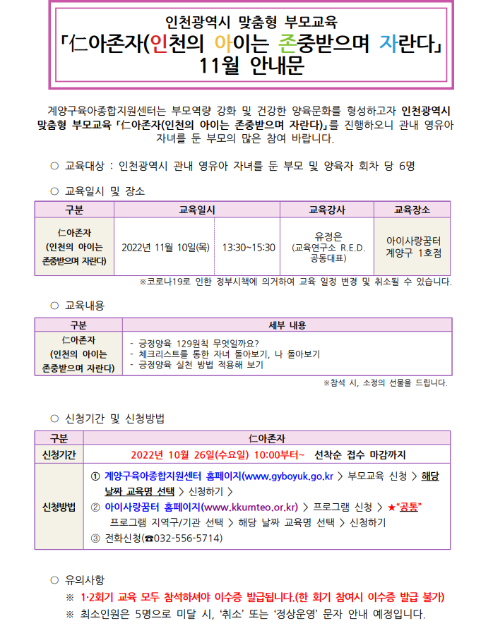 | 교육기간 | 2022-11-10(목) 13시30분 ~ 2022-11-10(목) 15시30분 | ||