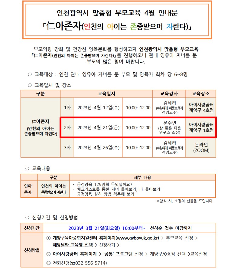 ★ 4월 21일(금) 오전 10시 <아이사랑꿈터 계양구 1호점>에서 진행됩니다.