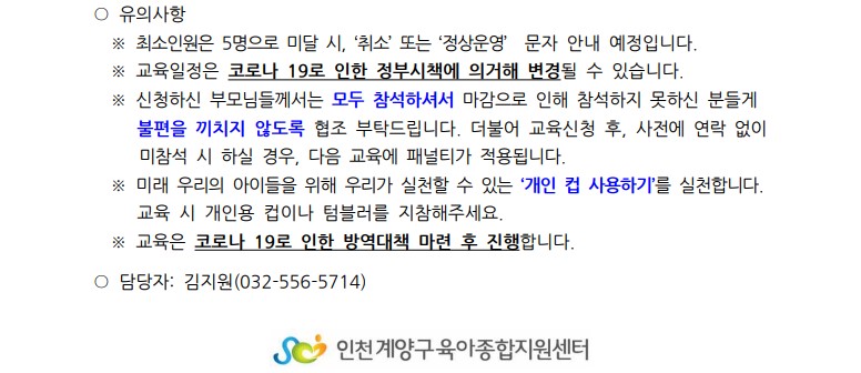 | 접수대상 | 부모, 일반 | 정원 | 6명 (신청: 8) |