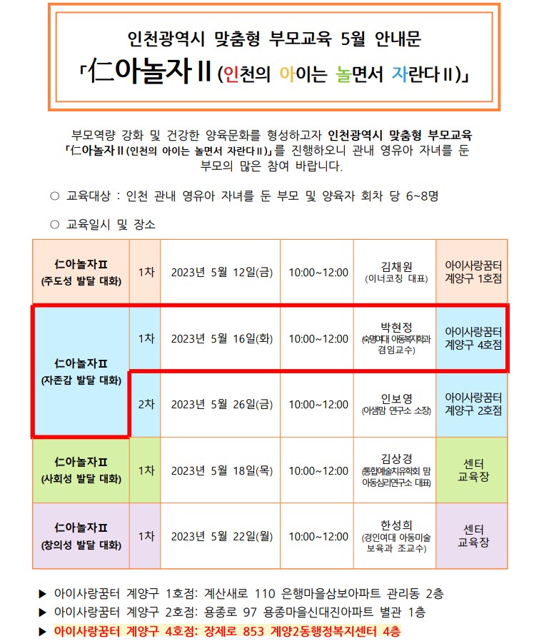 | 장소 | 아이사랑꿈터 계양구 4호점 | ||