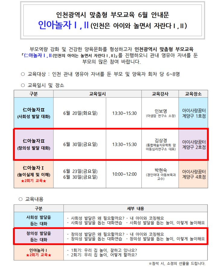| 장소 | 아이사랑꿈터 계양구 2호점 | ||