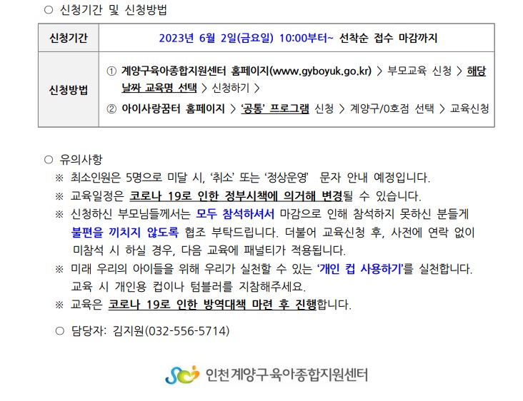 | 교육기간 | 2023-06-30(금) 13시30분 ~ 2023-06-30(금) 15시30분 | ||