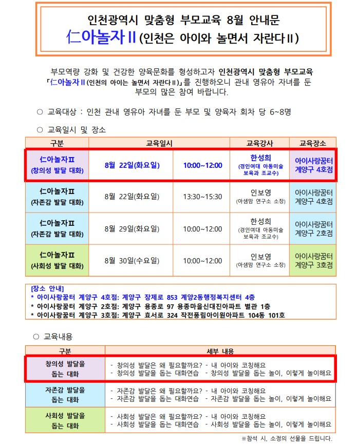 | 장소 | 아이사랑꿈터 계양구 4호점 | ||