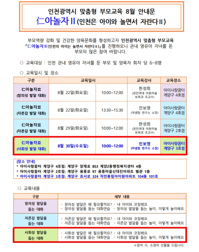 | 장소 | 아이사랑꿈터 계양구 3호점 | ||