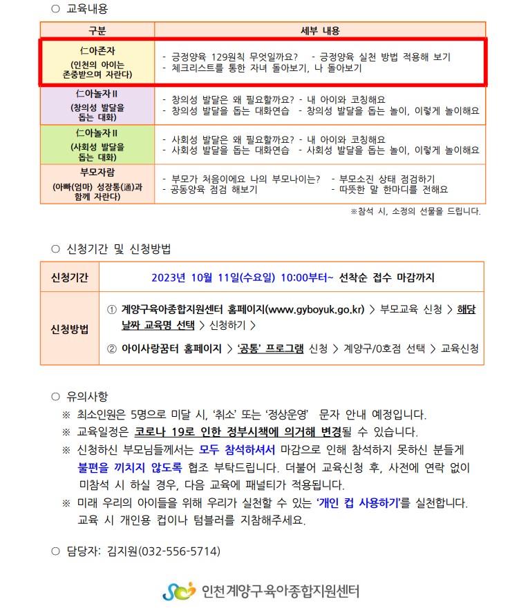 | 접수대상 | 부모, 일반 | 정원 | 7명 (신청: 6) |