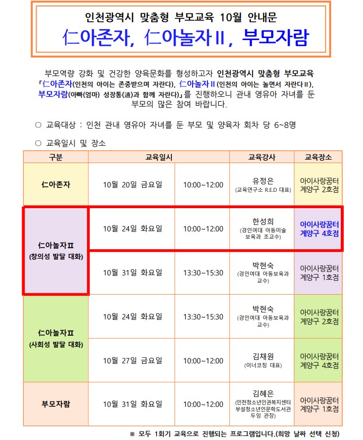 | 장소 | 아이사랑꿈터 계양구 4호점 | ||