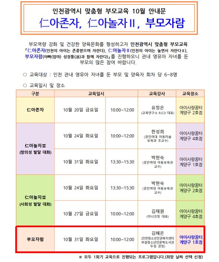 | 장소 | 아이사랑꿈터 계양구 1호점 | ||