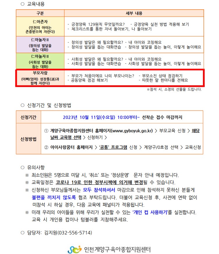 | 접수대상 | 부모, 일반 | 정원 | 7명 (신청: 5) |