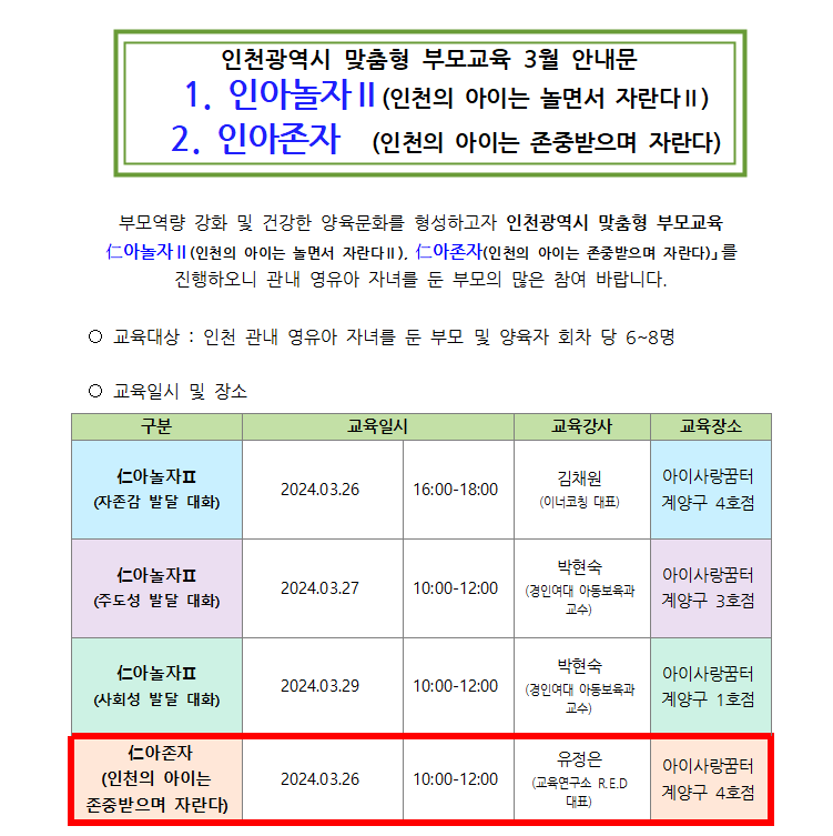 | 장소 | 아이사랑꿈터 계양구 4호점 | ||