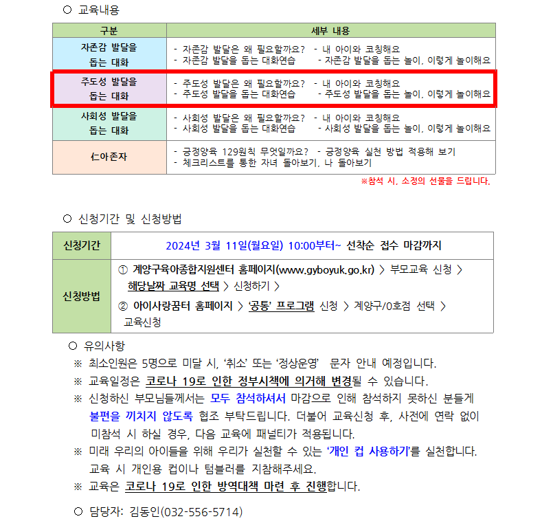 인천광역시 맞춤형 부모교육 仁아놀자Ⅱ- 주도성 발달을 돕는 대화기법