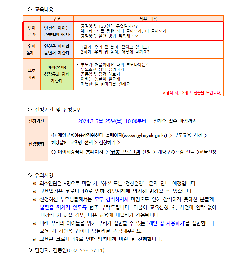 인천광역시 맞춤형 부모교육 仁아존자(인천의 아이는 존중받으며 자란다)