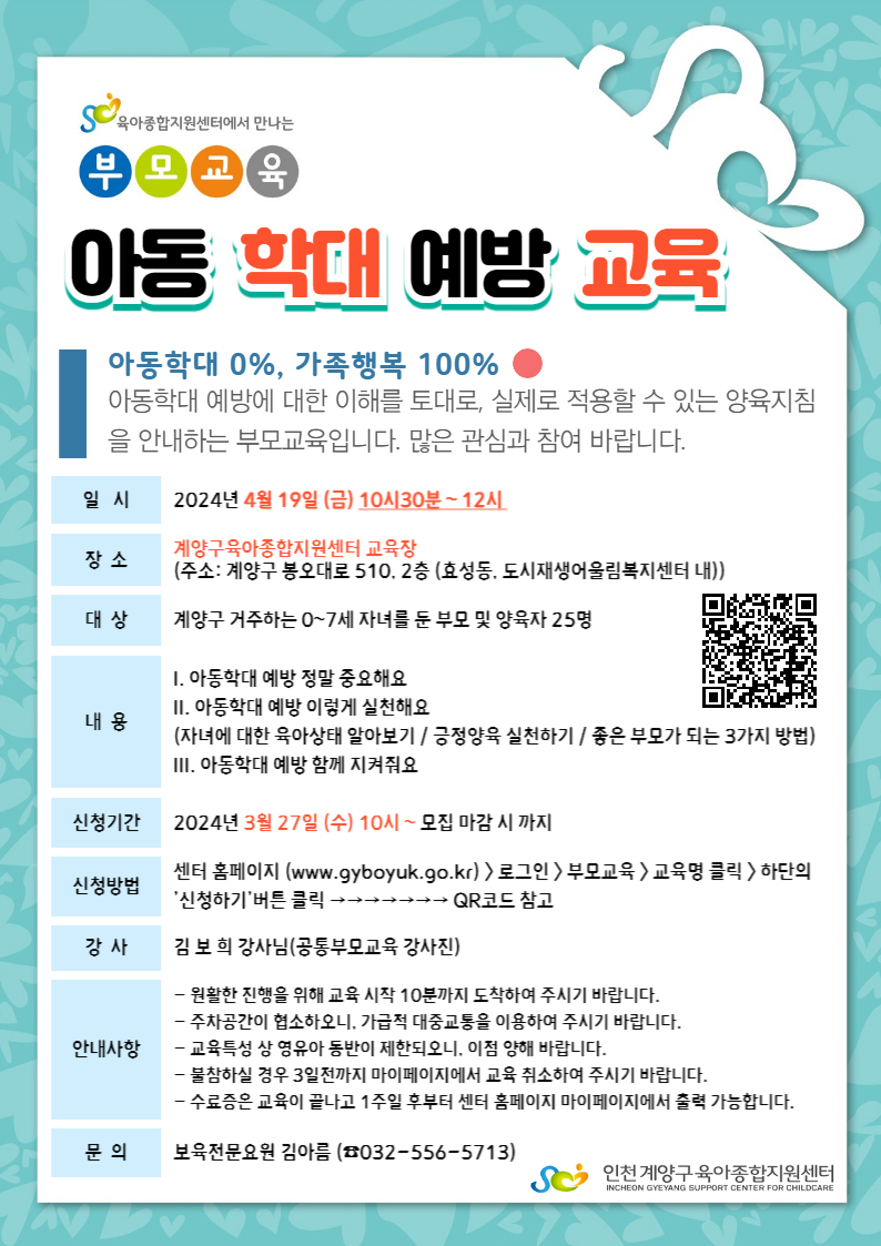 | 장소 | 센터 교육실 (계양구 봉오대로 510, 2층) | ||