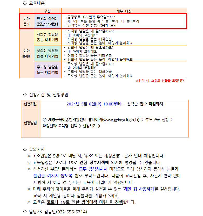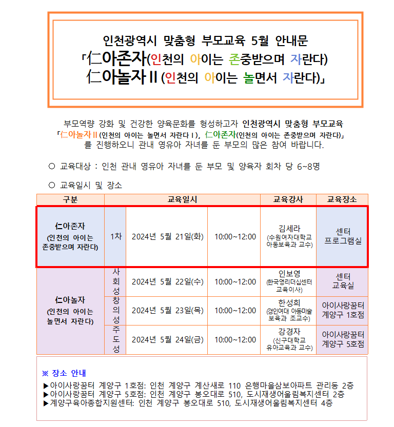 인천광역시 맞춤형 부모교육 仁아존자(인천의 아이는 존중받으며 자란다)