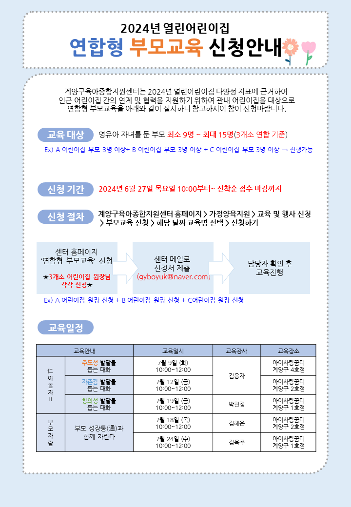| 교육기간 | 2024-07-24(수) 10시00분 ~ 2024-07-24(수) 12시00분 | ||