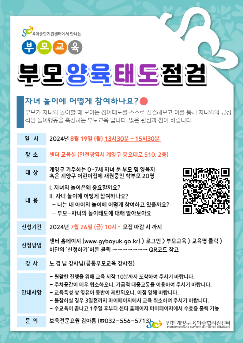 | 장소 | 센터 교육실 (계양구 봉오대로 510, 2층) | ||