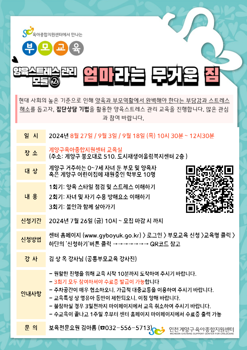 | 장소 | 센터 교육실 (계양구 봉오대로 510, 2층) | ||